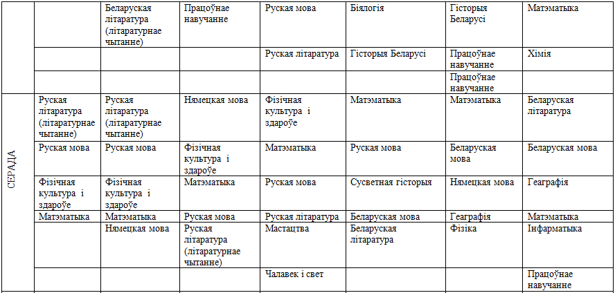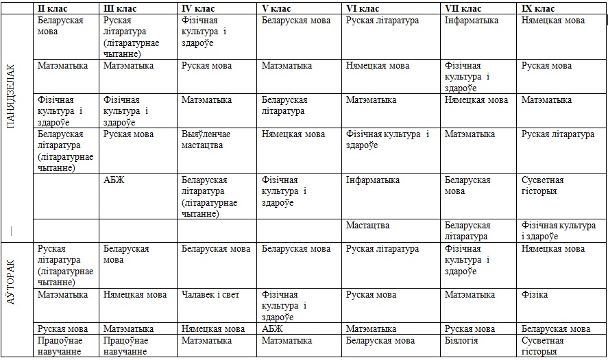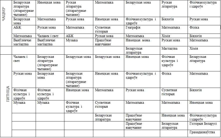 РАСКЛАД ВУЧЭБНЫХ ЗАНЯТКАЎ